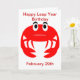 Carte d'anniversaire de l'année bissextile du crabe. Personnalisable avec n'importe quel texte de votre choix. Conception © www.justbyjulie.com.