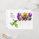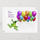 Dites Joyeux Anniversaire à un ami ou Aimé pendant l'année bissextile avec ces ballons colorés et une grenouille qui saute. Le texte intérieur est PERSONNALISABLE.