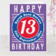 Couleurs vives et design audacieux. Carte d'anniversaire pour enfant. 13 ans.