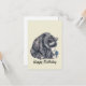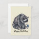 Adorable ours noir assis avec illustration papillon avec texte Joyeux Anniversaire, sur arrière - plan crème
