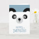 Illustration de mignonne panda avec arrière - plan bleu et charmant texte "Joyeux anniversaire".