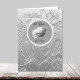 De magnifiques lys argentés forment le fond d'une belle rose blanche qui est le point central de cette carte d'anniversaire de mariage de 25 ans. Copyright Kathy Henis