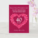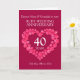 Personnalisez cette carte d'anniversaire de mariage rubis avec vos parents, photo, année de mariage et mots à l'intérieur. Exemple de texte : Chers Nana & Grandad pour votre anniversaire de mariage rubis 40 ans 25 mai 1984 à 2024. Effet de cœur rubis rouge et design par Sarah Trett.