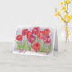 Un jardin printanier de tulipes rouges vives peintes à l'aquarelle.