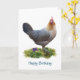 Une poule avec un cadeau dans son nid. Donnez à quelqu'un cette drôle de carte d'anniversaire d'oiseau.