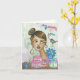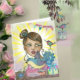 Célébrez la journée spéciale de votre soeur avec cette charmante et artistique carte d'anniversaire! Dotée d'une magnifique illustration peinte à la main d'une fille fantaisiste au milieu d'une scène festive avec un gâteau d'anniversaire, des cadeaux colorés et des bannières de fête, cette carte est conçue pour lui apporter un grand sourire au visage. Vous pouvez même customiser le nom sur le gâteau et la date (comme indiqué avec "Melanie, 15 juin") pour le rendre vraiment personnel. Une façon unique et sincère de souhaiter à votre soeur un joyeux anniversaire !