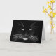 Gros plan du visage de chat noir aux yeux blancs, menton et murmure pour l'anniversaire.