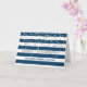 Carte de voeux d'anniversaire de l'employé ou du personnel en rayures bleu et blanc marine moderne et motif confetti argent.