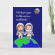 Une carte d'anniversaire avec maman et papa ou tante et oncle Astronautes et un sentiment chaleureux "Nous vous aimons à la lune et au retour !" Dans "Joyeux anniversaire à notre tremblement de terre préféré !" Le texte peut être customisé.