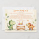 Envoyez un énorme merci avec cette adorable carte de remerciement Dinosaure ! Avec son design aquarelle fantaisiste mettant en vedette des bébés dinosaures. Cette carte est le moyen idéal pour exprimer votre gratitude après une deuxième fête d'anniversaire. Le message doux et ludique est écrit comme s'il venait du bébé qui fête son anniversaire, ce qui le rend encore plus spécial pour les amis et la famille. Que vous remerciiez vos invités pour leur présence, leurs cadeaux ou leur amour, cette carte au thème préhistorique mignon ajoute une touche charmante et sincère.