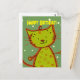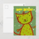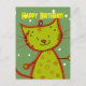 Célébrez l'anniversaire de votre proche avec cette adorable carte postale représentant une impression moderne d'un chat mignon de couleur verte, stylisée comme un dessin d'enfant. Le design comprend également un texte en gras qui dit "Joyeux Anniversaire", qui peut être personnalisé selon vos préférences. Cette carte postale est parfaite pour ceux qui se sentent encore jeunes et qui aiment les chats. Envoyez cette carte postale à votre ami, membre de la famille ou à votre conjoint et faites-leur savoir que vous pensez à eux en ce jour spécial !