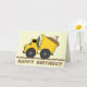 Une carte d'anniversaire illustrant un camion à benne remplie de saleté. Personnalisez avec l'âge dans la saleté. Texte personnalisable ci-dessous : "Joyeux anniversaire." Personnalisez l'intérieur avec votre message. Recherchez les invitations et les messages correspondants dans la catégorie "Anniversaire" de la paperie de Jill.