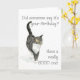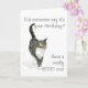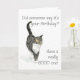 Une carte d'anniversaire pour un amoureux du chat avec un tabby gris et un chat blanc demandant, "Est-ce que quelqu'un a dit que c'est votre anniversaire ?" et le message "Ai un très bon !" Photo d'une aquarelle de Judy Adamson. L'intérieur est laissé vide pour votre propre message.