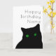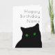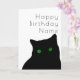 Image d'un mignon chat noir aux yeux verts contre un simple arrière - plan minimaliste blanc. Une police de style Art déco complète le design. Personnalisez facilement cette carte en modifiant le texte modèle à l'avant et à l'intérieur de la carte. Merci d'avoir vu mes dessins.