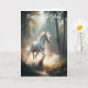 Un cheval blanc courant à travers une forêt. Convient à un anniversaire pour n'importe qui. Vous pouvez modifier le texte