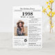 Disez un joyeux anniversaire avec cette carte d'anniversaire de style journal unique, y compris une photo du récipiendaire et une collection de faits amusants et des nouvelles du monde de 1998. Soyez créatif et créez un souvenir personnalisé. Conçu pour ressembler à un journal vintage de style classique noir et blanc. Une façon mignonne et amusante de célébrer les années 90!
