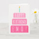 Carte d'anniversaire pour Emo. Si vous appelez votre mère Emo au lieu de maman, cette carte d'anniversaire est parfaite pour elle. (Emo signifie mère en finnois.) Votre emo va aussi adorer le dégradé de cette carte d'anniversaire avec un gâteau d'anniversaire qui dit "Joyeux Emo anniversaire !" Rendre cette carte personnalisable ! Cliquez sur "Edit Design", "Inside Bottom/Right : Text & Images", "Text" et "Add text" pour écrire votre propre message personnalisé à Emo intérieur !