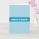 Carte d'anniversaire personnalisable avec un motif en vichy bleu avec emplacement de nom.