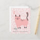 NewParkLane - Voici des ennuis ! Carte d'anniversaire enfant mignonne, avec un dessin animé rose sucré sur fond rose à pois blancs.