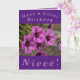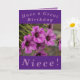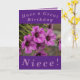 De belles fleurs de géranium de coquille violette font une belle image pour cette carte d'anniversaire colorée pour la nièce. Tout le texte peut être facilement personnalisé.