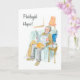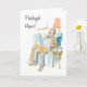 Une carte d'anniversaire avec le salut en gallois et un homme plus âgé se reposant avec le journal en compagnie d'un chat et d'un chien ; d'une illustration peinte à la main par Judy Adamson.