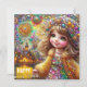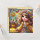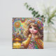 La carte présente une jeune fille heureuse à un feu d'artifice, scintillant avec des pierres précieuses. L'accueil est "Joyeux anniversaire". Le dos a une petite version de l'image avant et beaucoup de place pour écrire un message. AI Bing a aidé à la création de la carte.