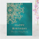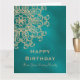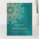 Une belle carte d'anniversaire TEAL et or tonifiée comme un bijou avec un motif de médaillon de sari ornemental indien luxueux et haut de gamme exotique et ethnique avec un design de fleurs et de lotus en soleil. Cette carte d'anniversaire élégante et belle de style indien moderne a un thème et un aspect formels, est-asiatiques indonésiens et/ou marocains des Mille et Une Nuits ou d'Aladdin. Conception © Chrissy H. Studios, LLC. Tous droits réservés.