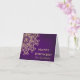 Une belle carte d'anniversaire violette améthyste et or ton sur ton avec un motif de médaillon de sari ornemental exotique et ethnique de luxe et de haute gamme inspiré de l'Inde avec un design floral et ensoleillé en forme de lotus. Cette carte d'anniversaire élégante et belle de style indien moderne a un thème et une apparence formels, est-asiatiques indonésiens et/ou arabes des mille et une nuits ou d'Aladdin. Conception © Chrissy H. Studios, LLC. Tous droits réservés.