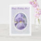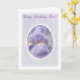 Un design de carte créatif mettant en vedette un iris violet pastel dans un thème de couleurs violet pastel et blanc dans cette carte d'anniversaire unique "Joyeux Anniversaire". Ce design élégant et coloré est le choix parfait pour dire "Joyeux Anniversaire Maman !" et est livré avec un design intérieur assorti avec une typographie de texte entièrement personnalisable pour s'adapter à votre occasion spéciale ou votre message.