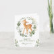 Carte d'anniversaire moderne sur le thème de la forêt avec un adorable bébé cerf et une élégante verdure à l'aquarelle