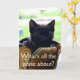 Un chaton mignon qui sort la tête d'une grosse botte, pose la question sur ce qui se passe. Quand on découvre que c'est ton anniversaire, on te fait un grand salut d'anniversaire.