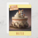 Une carte d'anniversaire avec un chaton assis sur un gâteau d'anniversaire sur le devant avec "Happy Birthday", police audacieuse casquette. Personnalisez le devant en ajoutant votre ou vos nom(s). L'intérieur de la carte offre de l'espace pour votre message dactylographié ou manuscrit.