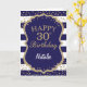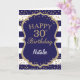 Navy Blue and Gold Parties scintillant confetti 30th Birthday Card avec nom personnalisé. Pour plus de personnalisation, cliquez sur le bouton "Customiser" et utilisez notre outil de conception pour modifier ce modèle.