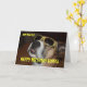 Fin maximum de tir de carte d'anniversaire de chien avec les lunettes de soleil jaunes dessus avec sa langue collant.