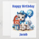 Un mignon poney cowboy fête son deuxième anniversaire avec un ballon bleu portant le numéro 2 et un casquette cowboy bleu dans une ferme. Personnalisez la carte avec le nom de votre enfant.