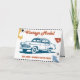 Carte d'anniversaire rétro des années 1950 avec une illustration de voiture ancienne et une bordure à damier. Le recto indique "Modèle Vintage Fait en 1950 - À manipuler avec soin" dans des polices et des couleurs authentiques du milieu du siècle. La légende à l'intérieur dit : "Vous n'êtes pas vieux... vous êtes un classique ! Joyeux Anniversaire." Imprimé sur du papier cartonné de haute qualité et personnalisable (ajouter un nom, une année ou un court message) - idéal pour les anniversaires marquants et les fêtes sur le thème rétro.
