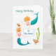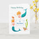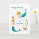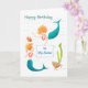 Une carte d'anniversaire à personnaliser avec la relation du destinataire (par exemple soeur, amie, cousine), avec deux sirènes, un poisson et un crabe ermite, à partir d'une illustration aquarelle de Judy Adamson. N'hésitez pas à modifier ou à supprimer le message intérieur au besoin.