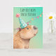 Envoyez vos vœux d'anniversaire avec une touche de charme excentrique ! Cette carte d'anniversaire personnalisée au capybara présente la créature décontractée préférée d'Internet dans une ambiance festive - parfaite pour les amoureux des animaux, les fans de mèmes ou quiconque apprécie une célébration décontractée. Que votre capybara porte un chapeau de fête, se prélasse dans une baignoire ou soit simplement adorablement détendu, cette carte ajoute une touche ludique à n'importe quel anniversaire. Personnalisez-la avec le nom et le message du destinataire à l'intérieur pour la rendre vraiment unique. C'est le moyen ultime de dire "Joyeux Anniversaire !" avec personnalité et positivité !