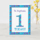 Une très jolie carte d'anniversaire 1er pour personnaliser pour n'importe quel nom ou parent, avec le numéro 1 et la bordure en fleurs brillantes, ditsy sur un arrière - plan bleu turquoise. Vous pouvez également modifier le message intérieur si vous le souhaitez.