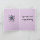 Des fleurs colorées encerclant une maison sur fond noir sont sur le devant. Une image plus petite de la même chose est imprimée à l'intérieur de la carte avec un fond lavande clair. Voir ce design sur une autre carte dans cette boutique.