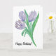 Une carte d'anniversaire pour elle avec une belle fleur violette et Joyeux Anniversaire écrit sur le devant. Vierge à l'intérieur. Ajoutez votre propre message.