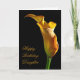 Un majestueux lis d'arum doré s'élève sur le côté. Une fleur parfaite pour transmettre vos souhaits d'anniversaire.