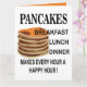 Carte d'anniversaire pour le petit déjeuner avec des crêpes américaines conçue par Nisha Prabhu. Commencez leur journée du bon pied avec une pile de crêpes d'anniversaire ! Cette carte de vœux adorable présente une pile appétissante de crêpes américaines nappées de sirop et d'une bougie d'anniversaire. Parfaite pour l'amoureux du petit déjeuner dans votre vie, cette carte est sûre de rendre leur journée encore plus spéciale. Plongez et célébrez avec ce design délicieusement amusant !