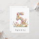 Rendez le 5e anniversaire d'un petit être encore plus spécial avec cette charmante carte, qui présente une délicate illustration à l'aquarelle du chiffre 5, magnifiquement réalisée à partir de minuscules fleurs pastel colorées. Un adorable lapin se tient debout à côté du chiffre, grignotant joyeusement les fleurs, ce qui ajoute une touche de douceur et de joie au design. Que vous soyez parent, grand-parent ou ami de la famille, cette carte enchanteresse est sûre de faire sourire le petit et ses proches.