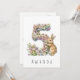 Rendez le 5e anniversaire d'un petit être encore plus spécial avec cette charmante carte, qui présente une délicate illustration à l'aquarelle du chiffre 5, magnifiquement réalisée à partir de minuscules fleurs pastel colorées. Un adorable lapin se tient debout à côté du chiffre, grignotant joyeusement les fleurs, ajoutant une touche de douceur et de joie au design. Que vous soyez un parent, un grand-parent ou un ami de la famille, cette carte enchanteresse est certaine de faire sourire le petit et ses proches.
