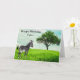 Cette carte présente un zèbre pâturant sur l'herbe verte, avec un arbre ombragé et le ciel bleu. Personnalisez cette carte avec votre propre salutation. Ça ferait une carte réfléchie pour garçon.