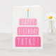 Carte d'anniversaire pour Tatko. Si vous appelez votre père Tatko au lieu de papa, cette carte d'anniversaire est parfaite pour lui. (Tatko signifie père en bulgare.) Votre tatko va aussi adorer le design rose pâle et foncé de cette carte d'anniversaire avec un gâteau d'anniversaire qui dit "Joyeux Tatko anniversaire !" Rendre cette carte personnalisable ! Cliquez sur "Edit Design", "Inside Bottom/Right : Text & Images", "Text" et "Add text" pour écrire votre propre message personnalisé à Tatko à l'intérieur !