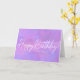Moderne et simple, mais très girly et féminin, carte violet et blanche. Happy Birthday est écrit dans un script de calligraphie blanc vif. Il apparaît vraiment contre un arrière - plan abstrait violet brillant.