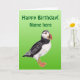 Cette carte d'anniversaire est illustrée d'un macareux emblématique. Une grande carte pour les amateurs de faune et d'oiseaux. Vous pouvez ajouter le nom du destinataire pour rendre cette carte plus personnelle.