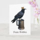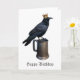 Un corbeau portant une couronne perchée sur un étain. Une carte d'anniversaire médiévale distinctive.